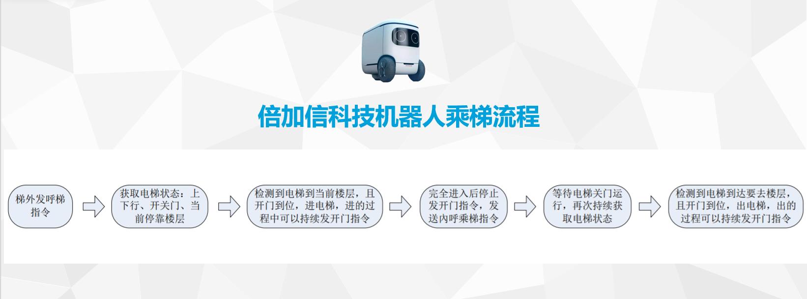 (2)有電梯到達當前樓層,倍加信梯控系統(tǒng)自動將當前電梯運狀態(tài)如上行、下行、門已開、正在關門等信息發(fā)送給機器人,以便機器人能選擇正確電梯進入。