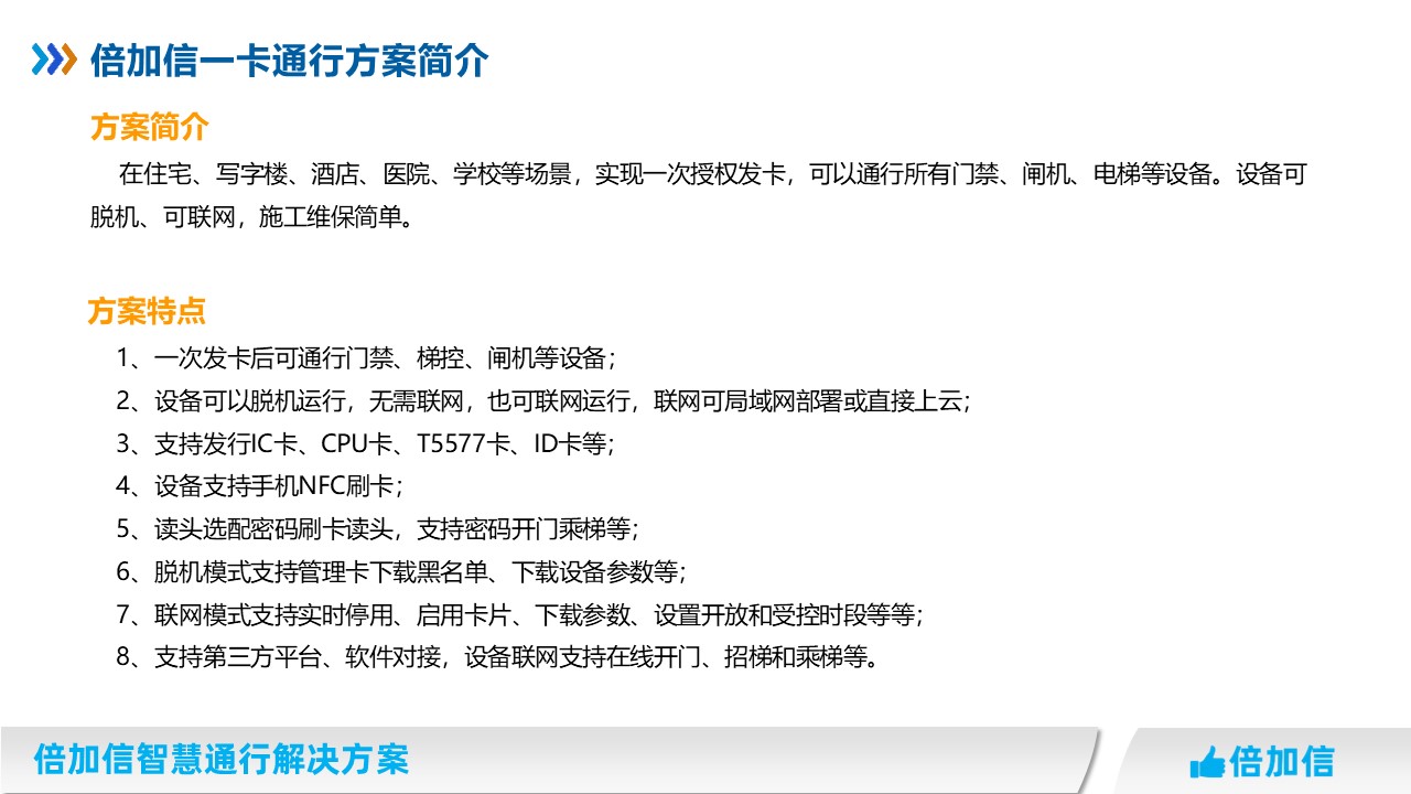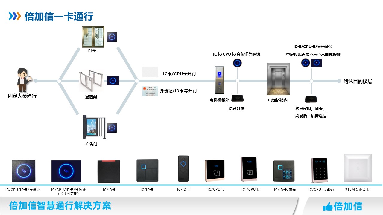 倍加信一卡通解決方案 一次發卡通行門禁、通道閘、梯控等系統