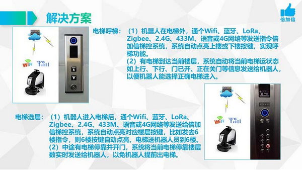 深圳市倍 加 信科技有限公司提供了一種全新機器人乘梯解決方案,該解決方案主要通過梯控云平臺與硬件的對接,從而實現(xiàn)多品類機器人和電梯的管理調度,幫助企業(yè)解決了機器人在建筑內的自主乘梯的垂直交通智能化需求。