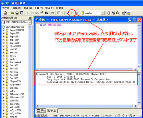 如何查看 SQL SERVER 2000 SP4補丁是否安裝?查看SQL安裝的版本方法?