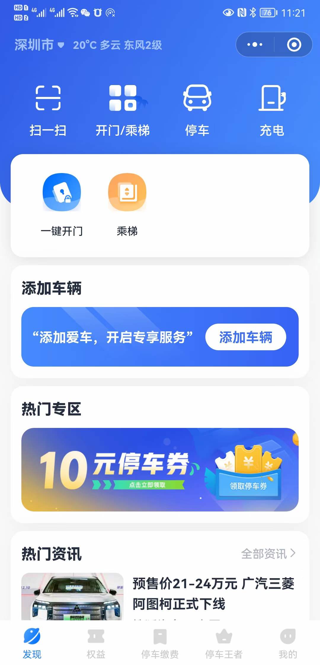 一個小程序可以停車場月租臨停繳費、二維碼開門乘梯過閘機、訪客開門乘梯、掃碼充電及減免停車費